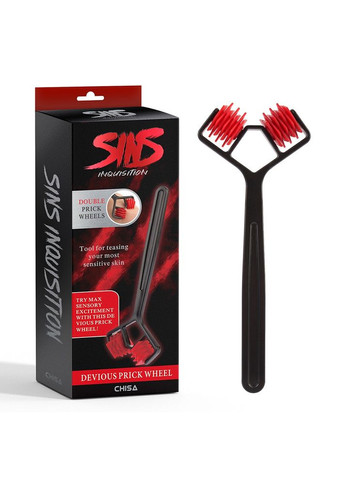 Колесо Вартенберга Chisa Sins Devious Prick Wheel чорно-червоний Колесо Вартенберга - медичний прилад, вигаданий доктором Робертом Вартенбергом для перевірки больової чутливості. Являє собою ручку, на якій закріплено коліщатко невеликого діаметру, по сторонам якого радіально розташовані гострі шипи. Випробуйте незабутні відчуття від ласок девайсом. Колесо Вартенберга виконане у новому, подвійному дизайні. Виконуйте масаж колесом в будь-якій зоні тіло, це принесе вашому партнеру яскраві відчуття на шкірі. Щоб зробити стимуляцію колесом ще чуттєвішою та цікавішою, рекомендуємо використовувати маску на очі та наручники. Таке колесо викликає бурю нових емоцій та нові бажання.
