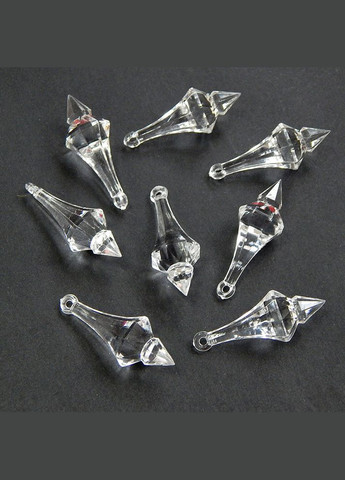 Прозорий декоративний пластиковий кристал в формі бурульки, з отвором для підвішування. Для виготовлення прикрас, гірлянд, декоративних підвісок. Розмір: 3,2х1,2 см. Матеріал: акрил. Ціна вказана за 1 штуку. Акрилові кристали та "штучний лід" — це декоративні елементи, які широко використовуються у творчості, святковому декорі та виробах ручної роботи. Вони вирізняються легкістю, міцністю та естетичною привабливістю, і чудово замінюють скляні або кришталеві деталі. Завдяки різноманіттю форм, кольорів і фактур ці елементи відкривають широкі можливості для створення унікальних композицій та декору. Акрилові кристали виготовляються з прозорого або кольорового акрилу, який має блискучу поверхню та імітує справжній кришталь. Вони можуть мати різні форми: крапель, ромбів, сердечок, зірочок, парашутів та інших фігур, з гладкою або гранованою текстурою. Часто кристали з акрилу мають отвори для підвішування, що дозволяє використовувати їх у гірляндах, підвісних композиціях або біжутерії. Кристали "штучний лід" виготовляються з акрилу та імітують нерівні, природні шматочки криги. Штучний лід може бути прозорим, матовим або мати легке підфарбування, що створює ефект справжнього льоду. Такий декор має нерівну фактуру, завдяки якій виглядає дуже реалістично й стильно. Декоративні акрилові кристали та "штучний лід" застосовуються в оформленні весільного, новорічного та тематичного декору, виготовленні прикрас для волосся, підвісок, сережок, браслетів, інтер’єрних композицій, світильників, а також для наповнення ваз, акваріумів і фотозон. Їх використовують як декоративні акценти у флористичних композиціях, подарунковому пакуванні або навіть у садовому дизайні. Легкість, міцність і безпека цих матеріалів роблять їх універсальним вибором для майстрів рукоділля та декоративного мистецтва.
