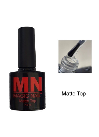 Матте Топ Magic Nail - це матовий топ для гель-лаку допоможе створити незвичайний ефект і дозволить робити неймовірні манікюри з поєднанням глянсових та матових нігтів. Матовий топ з приємною бархатистістю, він має густу консистенцію, відмінно лягає в один шар. Носиться протягом 3-4 тижнів, не жовтіє, не темніє, не дає сколів. Спосіб застосування: Підготувати нігті. Обробити антисептиком, надати форму та знежирити. Нанести базовий гель. Закріпити в UV-лампі - 2 хвилини або LED-лампі - 30 секунд. Тонким шаром нанести гель-лак, закріпити в UV-лампі - 2 хвилини або LED-лампі - 30 с.