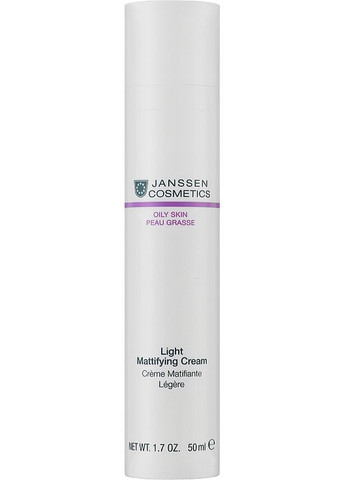 Легкий матувальний крем для обличчя від бренда Janssen Cosmetics забезпечить шкірі ідеальний вигляд та змусить її сяяти свіжістю протягом всього дня. Створений спеціально для тих, хто хоче позбавитися надмірного жирного блиску, засіб забезпечує ефективне регулювання роботи сальних залоз. Серед основних складників також є гіалуронова кислота, яка забезпечує оптимальне зволоження, роблячи шкірний покрив гладким й еластичним. Масло ши, багате корисними речовинами, робить шкіру м’якенькою на дотик, а екстракт алое вера, надає заспокійливої дії. Особливості Janssen Cosmetics Light Mattifying Cream: – сік алое вера надає заспокійливого ефекту, формує вологоутримувальний бар’єр;– Eql-Refining Complex бореться з надмірним жирним блиском;– масло ши надає шовковистості на дотик, усуває шорсткість;– робить шкіру еластичною, зменшує вираженість зморщок;– створює миттєвий матовий ефект, надає гладкості;– гіалуронова кислота забезпечує тривале зволоження;– легка формула чудово тримається під макіяжем.