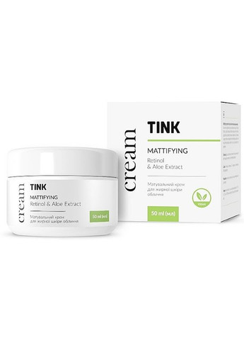 Зайвий блиск на жирній та комбінованій шкірі допоможе приборкати Mattifying Retinol & Aloe Extract Cream від бренду Tink. Це крем для обличчя, що матує шкіру, підтримує оптимальний рівень зволоження, а також активізує міжклітинні процеси. Ваша шкіра виглядатиме бездоганно та відчуватиме цілковитий комфорт. Окрім того, матова шкіра краще триматиме макіяж та ідеальний тон. Крем дуже легкий, тому ніяких обтяжень ви не відчуєте. Особливості Mattifying Retinol & Aloe Extract Cream від Tink: - ретинол у складі регулює роботу сальних алоз, мінімізуючи вироблення себуму та матуючи шкіру;- запобігає появі запалень та висипань;- екстракт алое глибоко зволожує та дбає про гідробаланс;- прискорює синтез колагену, щоб зберегти шкіру пружною та гладенькою;- тонізує та дарує довготривале відчуття свіжості;- має заспокійливу дію, нейтралізує запалення та подразнення;- рівномірно наноситься та швидко вбирається;- на 100% веганський продукт.