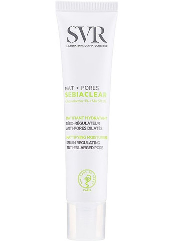 Свіжа, гладенька, рівна і наповнена природним сяйвом, без жирного блиску, – саме про таку шкірі мріють всі дівчата. Але оскільки з природою сперечатися марно, можна спробувати приборкати «звіра». Це дасть змогу перетворити шкіру і поліпшити її стан. Але дуже важливо знайти золоту середину – нормалізувати роботу сальних залоз, але не пересушити. З поставленим завданням впораються збалансована система догляду і матувальний порозвужувальний крем бренда SVR. В результаті регулярного застосування засобу шкіра стане м'якою і ніжною, а колір обличчя вирівняється. Особливості SVR Sebiaclear Mat Pores Cream: - продукт легкої консистенції вбирається за лічені секунди;- матує, звужує пори і попереджає їхнє розширення;- усуває запалення і почервоніння;- не залишає масної плівки і відчуття липкості;- не містить АНА-кислот;- глюконолактон і саліцилова кислота делікатно відлущують, ретельно очищають устя пор і усувають чорні цятки;- лимонна кислота освітлює, зменшує пігментні плями;- токоферол нормалізує гідроліпідний баланс.- дерматологічно протестований.
