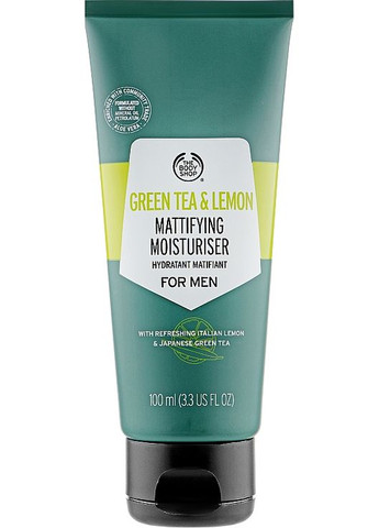 Бренд The ??Body Shop створив лінійку доглядової косметики спеціально для чоловіків. Green Tea and Lemon Mattifying Moisturiser For Men – це крем, який відновить шкіру, подарує їй відчуття комфорту, а також запобігає появі жирного блиску протягом дня. Цей крем є абсолютно прозорим і не має пігменту. Він поміщений у невелику тубу, яка не займе багато місця та завжди опиниться під рукою. Крем стане чудовим доповненням до щоденного догляду за чоловічою шкірою, схильною до жирності.Особливості Green Tea and Lemon Mattifying Moisturiser For Men бренду The ??Body Shop: - активно діє протягом 24 годин; - легкий та напівпрозорий; - поступово наноситься і швидко вбирається, не залишаючи слідів; - формула містить у складі зелений чай, лимон та алое вера; - матує та усуває жирний блиск; - призначений для чоловічої шкіри; - регулює роботу сальних залоз; - дарує приємний аромат і огортає свіжістю.