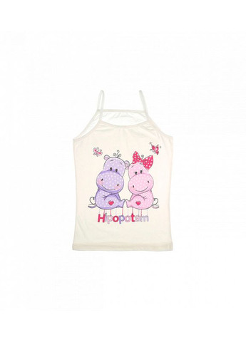 Дитяча майка для дівчаток на широких бретелях, з малюнком бегемотика. Матеріал: 95% хлопок 5% еластан.