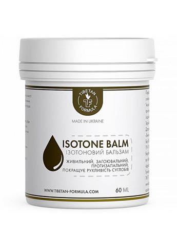 Ізотоновий бальзам – оригінальний комплексний препарат для профілактики та лікування запальних захворювань суглобів. Ізотоновий бальзам активно впливає на хвороботворні мікроорганізми та блокує їх розмноження у місці запалення. Чинить протизапальну дію, відновлює рухливість суглобів, покращує кровообіг і прискорює обмін речовин у місці запалення. Забезпечує високий лікувально-профілактичний та протизапальний ефекти , підвищує резистентність (опірність шкідливим факторам) організму людини. Засіб проникає через біологічні барєри, гнітить розмноження патогенних мікроорганізмів. За рахунок спеціально підібраного складу знімає запалення, прискорює загоєння, знеболює, знімає набряклі явища при запальних захворюваннях опорно-рухового апарату (артритах, бурситах, ревматизмі), відновлює рухливість суглоба. Всі компоненти засобу в комплексі мають такий багатосторонній вплив, при якому пригнічується причина запалення суглоба, полегшуються симптоми захворювання – знімається біль, набряклість, відновлюється функціональність суглоба – їхня рухливість. Склад : ізотон, кокосова олія, олія ши, соєвий віск. Рекомендації щодо застосування: Наносити мазь на проблемні ділянки тонким шаром, плавними масажними рухами, 2 рази на день – вранці та ввечері. Індивідуальні результати можуть відрізнятись. Пропоновані схеми лікування та профілактики найпоширеніших станів від валеологів Тібетської формули Дуйко А. А.) Виготовлено в Україні : Тибетська формула. Сертифіковано у МОЗ України Не є лікарським засобом Якість гарантуємо !!!