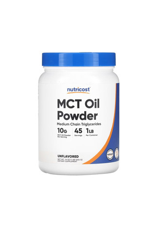 Середньовічні тригліцериди (МСТ) - це жири, які природно містять у кокосовій та пальмовій оліях. Вони засвоюються швидше і швидше за інші жири. Середньовічні тригліцериди швидко поглинаються з шлунково-кишеного тракту і дуже швидко перероблюються печінкою. За спостереженнями, енергія від розщеплення цих жирів йде на використання організму, а не на накопичення. Численні дослідження вказують на те, що заміна різних жирів маслом МСТ у здоровому раціоні може допомогти підтримувати здорову вагу й склади тіла. Вживання надмірної кількості олії з МСТ може спричинити дискомфорт у шлунку, особливо в тих, хто застосовує її вперше. Почніть із 1/2 порції та поступово збільшуйте щоденне споживання до досягнення бажаної дози, але не перевищуйте рекомендовану дозу. Розмір порції: 1 мірна ложка (10 г) Порцій в упаковці: 45 Кількість в 1 порції % від добової норми* Калорії 60 Усього жирів 8 г 10 % Насичені жири 7 г 35 % Усього вуглеводів 2 г 1 % Клітковина 2 г 7 % Натрій 10 мг 0 % Білки 1 г Порошок із MCT в олії 10 г ** * Відсоток від добової норми за умови споживання 2000 калорій на день. ** Добову норму не визначено. Інші інгредієнти Порошок із MCT (середньоланцюгові тригліцериди, розчинна тапіокова клітковина, казеїнат натрію (похідний від молока), містить 2 % або менше кожної з наведених нижче речовин: соняшниковий лецитин, діоксид кремнію). Містить молоко. Виготовлено в США з використанням інгредієнтів з усього світу, була виконана перевірка якості. Рекомендації із застосування Як дієтичну добавку змішуйте 1 мірну ложку на день зі 6–10 унціями (6–10 унціями) води або за рекомендацією медичного працівника.