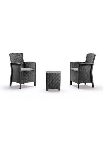 Набір садових меблів BICA Lido terrace — це стильне та компактне рішення для облаштування зони відпочинку на балконі, терасі або в саду. До комплекту входять два зручні крісла з ергономічною формою та м’якими подушками, а також квадратний столик, який одночасно виконує функцію місткої скрині для зберігання (об’єм 70 літрів). Виготовлений із міцного поліпропілену, комплект стійкий до вологи, УФ-променів і легко очищується. Поверхня меблів стилізована під штучний ротанг, що надає їм естетичного та сучасного вигляду. Легкий і міцний набір ідеально підходить як для відпочинку, так і для функціонального зберігання речей. Особливості До комплекту входять два крісла з подушками та стіл-скриня, що забезпечує комфортне й практичне використання на відкритому повітрі; Ергономічна форма крісел і подушки з бавовняними чохлами забезпечують зручну посадку й приємні тактильні відчуття; Садовий стіл і крісла стилізовані під плетіння з ротанга, що надає набору естетичного вигляду та пасує до будь-якого екстер’єру; Стіл обладнаний вбудованою скринею об’ємом 70 літрів, що зручно для зберігання подушок, пледів, іграшок або інших дрібниць; Виготовлений із міцного поліпропілену, стійкого до вологи, сонячного світла, корозії та механічних пошкоджень; Крісла витримують навантаження до 110 кг, а стіл — до 30 кг, що робить набір надійним для щоденного використання; Компактні розміри дозволяють розмістити меблі навіть на невеликих балконах або терасах, спрощуючи зберігання та транспортування; Вага комплекту становить 16 кг, у коробці — 18,6 кг, постачається в міцній картонній упаковці.