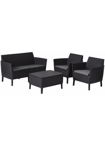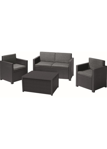 Комплект садових меблів Keter Monaco set — це ідеальне рішення для створення затишної зони відпочинку на відкритому повітрі. Комплект виготовлений із міцного пластику з імітацією ротанга та представлений в елегантному сірому кольорі. До складу входять два крісла, двомісний диван і стіл-скриня, який поєднує функції журнального столу та місткої скрині для зберігання. Подушки, що входять до комплекту, забезпечують додатковий комфорт під час сидіння. Завдяки неметалевій конструкції меблі не піддаються корозії, стійкі до УФ-випромінювання та не потребують складного догляду, зберігаючи привабливий вигляд навіть за тривалого використання на вулиці. Особливості Корпус виготовлений із міцного й стійкого до погодних умов поліпропілену, який не гниє й не іржавіє; Стіл має функцію скрині, що дозволяє зручно зберігати подушки, пледи або дрібні речі; Завдяки стійкості до сонячного випромінювання набір пластикових меблів не втрачає колір і форму навіть за тривалого впливу високих температур; Ергономічний дизайн крісел і дивана забезпечує зручну посадку та повноцінний відпочинок; У комплект входить 8 подушок для сидіння, виконаних у тон меблевому гарнітуру; Максимальне навантаження: крісло — до 110 кг, диван — 110 кг на одне місце, стіл — 30 кг; Усі елементи комплекту легко збираються без інструментів, що заощаджує час під час встановлення; Комплект стійкий до вологи та перепадів температури, підходить для відкритих терас, садів, веранд і балконів; Варіанти використання Облаштування тераси або саду для прийому гостей, чаювань і сімейних посиденьок на свіжому повітрі; Використання на балконах, у патіо, альтанках або біля басейну як сезонні меблі; Організація лаунж-зони в заміських будинках, готелях, на турбазах або в кемпінгах; Зберігання садових аксесуарів, скатертин або іграшок у відсіку під кришкою столу-скрині; *Реальний колір товару може дещо відрізнятися від зразків, представлених на сайті, залежно від технічних налаштувань вашого екрану, а також, зважаючи на особливості матеріалу, відтінок може змінюватися залежно від освітлення.