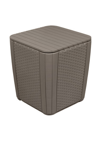 Allibert Ice Cube — це функціональний стіл-скриня з термоізоляцією, який стане ідеальним доповненням для пікніків, вечірок і заміського відпочинку. Виготовлений у графітовому кольорі з фактурою під штучний ротанг, він стильно виглядає та гармонійно поєднується з будь-якими садовими меблями. Стіл витримує навантаження до 110 кг і може використовуватись як додаткове сидіння. Внутрішній відсік об'ємом 33 л із гелевим акумулятором температури дозволяє зберігати прохолоду напоїв і продуктів упродовж кількох годин. Міцний пластик стійкий до вологи та ультрафіолету, не потребує спеціального догляду й не піддається корозії. Особливості Забезпечує термоізоляцію для зберігання охолоджених напоїв і продуктів завдяки вбудованому термоотсеку та акумулятору холоду; Багатофункціональне використання як столика, ящика для зберігання та додаткового місця для сидіння з навантаженням до 110 кг; Сучасний дизайн з оздобленням під штучний ротанг легко вписується в екстер’єр тераси або саду; Компактні розміри та корисний внутрішній об’єм 33 л роблять виріб зручним для виїздів і заходів на відкритому повітрі; Виготовлений із зносостійкого пластику, стійкого до погодних умов, вологи й УФ-випромінювання. *Реальний колір товару може дещо відрізнятися від зразків представлених на сайті залежно від технічних налаштувань Вашого екрану, а також, зважаючи на особливості матеріалу, відтінок товару може змінюватися залежно від освітлення.