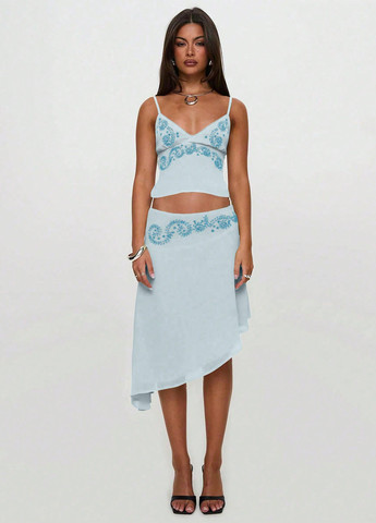Топ має зручну посадку на бретельках, які забезпечують комфортну посадку та свободу рухів. Завдяки своєму крою він підкреслює жіночу фігуру і надає їй витонченості.