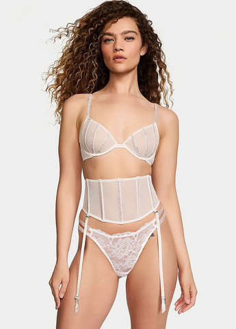 Сексуальний комплект Victoria Secret. Цей комплект доповнить ваш найсексуальніший образ. Ідеальний варіант для особливих вечорів. Сексуальний комплект з ніжного сітчастого та мереживного матеріалу. Пояс з вертикальними кісточками, прикрашеними блискучими стразами. Застібається на гачки ззаду. Підв'язки для панчіх регулюються по довжині. Супер-кокетливі трусики танга від Victoria´s Secret - гарний варіант для особливих вечорів. Мереживний матеріал, не еластичні подвійні бретелі з боків, прикрашені стразами. Бавовняна ластовиця. Відмінна якість.