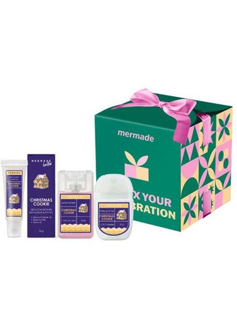 Подарунковий набір Mermade Jingle Bell Rock для жінок, 3 продукти Жіночий подарунковий набір Mermade Jingle Bell Rock - комплект доглядових засобів, які так необхідні на кожен день - бальзам для губ, антисептик і крем для рук. Набір створений для тих, хто обожнює теплі та десертні аромати і прагне зберегти шкіру губ і рук зволоженою, а також потурбуватися про гігієну. Особливості подарункового набору: легко поміститься в сумочку; має насичений аромат різдвяних прянощів; стильна подарункова упаковка. Що входить до набору: Парфумований антисептик для рук, 18 мл Парфумований крем для рук, 30 мл Бальзам для губ, 10 мл Для кого підходить для любителів десертних ароматів; для будь-якого типу шкіри; для щоденного догляду; для подарунків на будь-яке свято. Спосіб застосування Нанесіть спрей-антисептик на шкіру рук і дайте вбратися. Нанесіть крем для рук. Оновлюйте покриття, щойно відчуєте сухість або стягнутість. Нанесіть бальзам на чисту шкіру губ. Обсяг і форма випуску Подарункова коробка з трьома засобами для тіла.