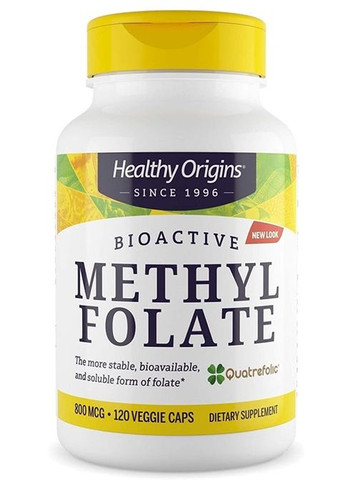Біоактивний метилфолат HealthyOrigins (містить Quatrefolic) - це більш стабільна, біодоступна і розчинна форма фолату. Традиційна фолієва кислота не володіє біологічною активністю і повинна переводитися в метаболічно активну форму 5-метилтетрагідрофолата (5-MTHF). Таке перетворення виконується за допомогою багатоступінчастого процесу в організмі, в якому основну роль відіграє фермент метилентетрагідрофолатредуктаза (MTHFR). Деякі люди через унікальний набір генів і їх експресії володіють поліморфними формами даного ферменту, і в їх організмі не утворюється необхідна кількість MTHFR. Недостатнє або некоректне вироблення MTHFR ускладнює перетворення фолієвої кислоти в активну форму 5-MTHF. Функціональна дія: Метилфолат являє собою біологічно активну форму фолієвої кислоти і володіє всіма її властивостями На відміну від фолієвої кислоти Метилфолат долає гематоенцефалічний бар'єр (бар'єр між кровоносною і центральною нервовою системами) і підтримує здоровий стан нервової системи Підтримує здоров'я серцево-судинної системи за допомогою контролю над рівнями гомоцистеїну в крові (фактора ризику атеросклерозу судин серця і мозку), високий рівень якого може привести до розвитку хвороб серця Метилфолат необхідний для нормального функціонування нервової системи. Він бере участь у виробництві нейротрансмітерів - серотоніну, мелатоніну, допаміну, адреналіну і норадреналіну. Ці функції мають важливе значення для серцево-судинної системи, а також для підтримки настрою. Покращує самопочуття і настрій при депресивних і нервових розладах Застосування: Дорослим приймати в якості харчової добавки по 1 вегетаріанській капсулі в день разом з їжею або відповідно до рекомендацій лікаря. Протипоказання: Індивідуальна непереносимість компонентів. Попередження: При вагітності, годуванні груддю, прийомі будь-яких медичних препаратів або наявності будь-яких захворювань слід проконсультуватися з лікарем перед вживанням будь-яких харчових добавок. У разі виникнення будь-яких побічних реакцій припиніть використання і проконсультуйтеся з лікарем. Зберігати в недоступному для дітей місці. Не застосовувати препарат, якщо зовнішня захисна мембрана відсутня або пошкоджена.
