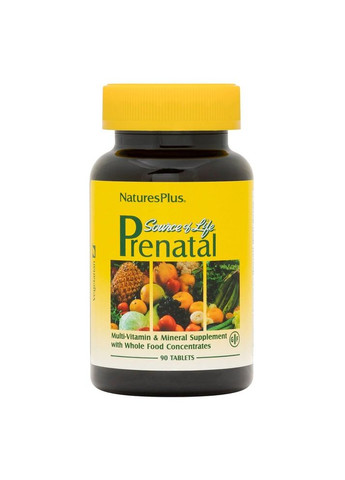 Мультивітаміни для вагітних, Source of Life Prenatal, Nature's Plus - є чудовим джерелом вітамінів, мінералів та поживних речовин, необхідних для жінок під час вагітності Розмір порції: 2 таблетки Кількість порцій: 45 Кількість на порцію % від добової потреби** Вітамін А (бета-каротин) 3000 м0 Вітамін С (аскорбінова кислота) 150 мг 125% Вітамін D (ергокальциферол) 2.5 мкг (100 МО) 17% Вітамін E (d-альфа-токоферилсукцинат) 67 мг (100 МО) 353% Тіамін (вітамін B1) 7 (вітамін В2) 10 мг 625% Ніацин (ніацинамід) 40 мг NE 222% Вітамін B6 (піридоксин гідрохлориду) 5 мг 250% Фолат (кальцій-L-5 метилтетрагідрофолат) 1333 мкг DFE (800 мкг L-метил2 40 мкг 1429% Біотин 800 мкг 2286% Пантотенова кислота (пантотенат кальцію) 25 мг 357% Холін (бітартрат) 5 мг <1% Кальцій (амінокислотний хелат/комплекс) 400 мг 31% Залізо (амінокислот 7%) (амінокислотний комплекс) 200 мг 16% Йод (ламінарія) 150 мкг 52% Магній (амінокислотний хелат/комплекс) 200 мг 50% Цинк (амінокислотний хелат/комплекс) 15 мг 115% Марганець (амінокислотний хелат комплекс) 10 мг <1% Бромелайн (фермент із плодів ананасу) 50 мг † Папаїн (фермент із плодів папайї) 50 мг † Інозитол 5 мг † ПАБК (параамінобензойна кислота) 5 мг † Суміш пробіотиків (Lactobacillus acidophi longum) 100 млн клітин ‡ † † Добова потреба не визначена. **Відсоток від добової потреби ґрунтується на дієті в 2000 калорій. ‡ На момент виготовлення.