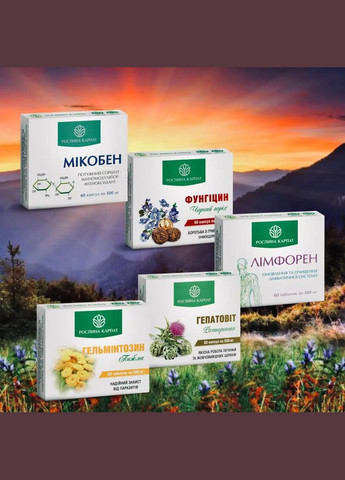 Магазин «Рослина» пропонує купити Програма очищення організму, 300 штук курс, виробник Рослина Карпат. Виведення токсинів, очищення лімфи, зниження холестерину, очищення крові, протигрибкова дія, противірусна, протиглистова.