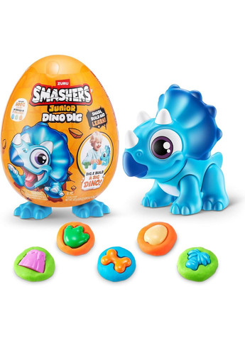 Відкрий для себе світ динозаврів разом з наборами Zuru Smashers Junior Dino! Цей набір подарує дитині можливість створити свого власного динозавра та розвивати творчі здібності за допомогою чудового набору для ліплення. Основні характеристики: Відкрий свого динозавра: У кожному наборі Smashers Junior Dino Dig Egg знаходиться один ліпний динозавр, який дитина може створити. В даному випадку, це Трицератопс, один з найбільш відомих динозаврів, що дозволить вашій дитині поринути в унікальний світ доісторичних тварин. 18 сюрпризів всередині: Цей набір з тістом для ліплення включає безліч сюрпризів для малюків, серед яких 3 кольори тіста, 3 форми для ліплення, наліпки та милого динозавра. 500г тіста для динозаврів: Smashers Junior Dino Dig набір містить 500г тіста для ліплення, а також 3 форми для створення різних фігурок. Сенсорна гра для розвитку дрібної моторики: Ліплення та м'яття тіста допомагають розвивати дрібну моторику і сприяють розвитку творчих здібностей дітей. Артикуляція рухів: У набір входить динозавр, який може рухати своїми руками та головою, додаючи більше можливостей для гри та уявних пригод! Цей ігровий набір — відмінний подарунок для дітей, який сприяє розвитку їхніх творчих здібностей та уяви через захоплюючу гру з динозаврами і тістом для ліплення.
