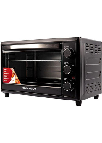 Електрична духовка Grunhelm GN33AB духова шафа електропіч конвекція 33 л 3 режими приготування Чорний 1800 Вт Grunhelm GN33AB — електрична піч для нагрівання температури, в якій вбудовані спеціальні нагрівальні елементи (ТЕНи), які розташовані, як правило, у верхній та нижній частинах печі. Наявність потовщених стінок знижує споживання електроенергії у процесі готування. Внутрішнє та зовнішнє виконання печі виконані з емальованої сталі. Вбудований таймер спростить процес готування і вчасно сповістити вас про готовність страви звуковим сигналом. Наявність спеціальних знімних ручок (ухвату), грати для гриля і дека зробить ваш процес готування максимально комфортним. Електропіч завдяки своїм не великим розмірам ідеально увіллється в обстановку, де необхідно зберегти максимум простору, як на невеликій за площею кухні в міській квартирі, або в заміському будинку. Характеристики GN33AB: Об'єм, л: 33 Функції приготування: Гриль Діапазон температури: 100-250 °С Кількість режимів приготування: 3 Особливості GN33AB: Автовимкнення Звуковий сигнал: Таймер Таймер: 60 хв Внутрішнє покриття: Антипригарне Напруга: 220-240 В Комплектація: Електрична піч, деко з антипригарним покриття, грати гриль, ручка для рогача Колір корпусу: Чорний Тип управління: Механічне Потужність, кВт: 1.8 Матеріал корпусу: Емальована сталь Програми: Верхнє нагрівання, Нижнє нагрівання, Верхнє + Нижнє нагрівання Вага: 6.3 кг Вага в упаковці: 7.5 кг Габарити (ВхШхГ): 35.7 х 51.5 х 32.2 см Габарити в упаковці (ВхШхГ): 37.9 х 56.3 х 36.9 см Кількість стекол у дверцятах: 1 Країна реєстрації бренду: Україна