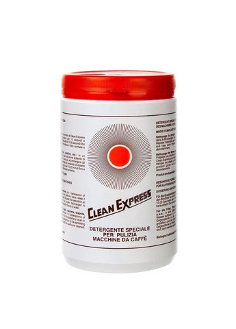 Порошок для чищення професійних кофемашин від кавових олій Clean Express від італійського виробника Nuova Ricambi, у банці 900 г порошку. Для чищення однієї групи кавоварки Вам достатньо однієї столової ложки засобу. Також для чищення Вам знадобиться сліпе сито чи гумова заглушка. Інструкція з очищення: Одягніть сліпе сито на холдер (або покладіть заглушку), насипте порошок у холдер (одна столова ложка), вставте холдер у групу кавомашини. Далі по черзі включайте та вимикайте протоку по 5 сек. Повторити процес 5-10 разів.Після того, як весь порошок вимиється із сита, пропустіть через групу достатню кількість води для промивання. Для очищення холдерів розведіть порошок у гарячій воді і замочіть холдери на 5-10 хв. Після цього ретельно промийте чистою водою. Професійна нешкідлива європейська хімія для чищення груп кавоварки від кавових олій. Купити можна у Києві. Знижки: - від 2 банок, знижка -5%; - від 10 банок, знижка -10%; - від 24 банок, знижка -15%;