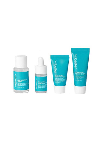 В набір входить: Очищувальна пінка для чутливої шкіри обличчя -VVBetter 5.5 Soothing Cleansing Foam (20ml). Відлущувальний тонер з АНА-кислотами - VVBetter AHA Boosting Toner (30ml). Зволожувальна ліфтинг-сироватка з азіатською центелою - VVBetter Teca Lifting Moisture Serum (10ml). Зволожувальний крем з пептидами - VVBetter Teca Lifting Moisture Cream (10ml). Особливості VVBetter Travel Kit: підходить для всіх типів шкіри очищає тонізує підтягує зміцнює екстракт центелли азіатської - стимулює процеси відновлення клітин, мінімізує запалення, заспокоює подразнення екстракт зеленого чаю - антиоксидант, заспокоює подразнення і почервоніння гіалуронова кислота - зволожує та запобігає втраті вологи Спосіб застосування: VVBetter 5.5 Soothing Cleansing Foam: нанесіть необхідну кількість на вологі руки і створіть рясну піну. Обережно помасажуйте все обличчя протягом 1-2 хвилин і змийте теплою водою. VVBetter AHA Boosting Toner: після вмивання, перед нанесенням іншого догляду протерти шкіру ватним диском, змоченим тонером або налити тонер на долоні та розподілити подушечками пальців. При застосуванні тонеру рекомендується використання сонцезахисного крему вдень. VVBetter Teca Lifting Moisture Serum: нанести засіб на очищену і тонізовану шкіру і розподілити легкими поплескувальними рухами. Використовувати вранці та ввечері. VVBetter Teca Lifting Moisture Cream: нанести крем на очищену й тонізовану шкіру, розподілити легкими масажними рухами. Використовувати вранці та ввечері.