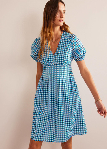 Ця проста бавовняна міні-сукня доповнена короткими зібраними рукавами та виточками на спідниці для надання форми та обсягу. Це легка річ, до якої ви повертатиметеся знову і знову. Кишені в бічних швах. Можна прати в пральній машині. Напівприталений фасон. Довжина міні. Короткі рукава. На високий зріст (до 178 см).