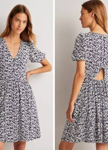 Ця проста бавовняна міні-сукня доповнена короткими зібраними рукавами та виточками на спідниці для надання форми та обсягу. Це легка річ, до якої ви повертатиметеся знову і знову. Кишені в бічних швах. Можна прати в пральній машині. Напівприталений фасон. Довжина міні. Короткі рукава. На середній зріст (до 172 см).