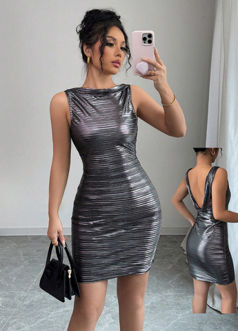 Матеріал Поліестер / Колір Сріблястий / Фасон Силуетна, З відкритою спиною / Довжина виробу Міні / Стиль Коктейльний