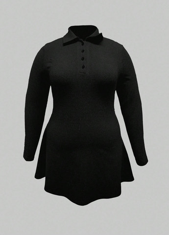 Міні-сукня INAWLY розміру плюс – чорна. Сукня з довгими рукавами та облягаючого крою. Середня лінія талії. Можна прати у пральній машині або чистити у хімчистці.