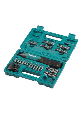 Компактний шуруповерт Makita DF001DW для точних робіт з невеликим навантаженням Акумуляторна викрутка Makita DF001DW - компактна дриль-шуруповерт з вбудованим літієвим акумулятором. Зарядний пристрій і біти в комплекті. Можливість встановлення рукоятки у пряме або пістолетне положення. Вбудована світлодіодне підсвічування полегшує роботу в темряві. Відмінне рішення для роботи в важкодоступних місцях. Основні особливості DF001DW: літій-іонний акумулятор вольтажем 3.6 V гарантує роботу продуктивного мотора і надійного редуктора, які забезпечують регульовану швидкість обертання в діапазоні 0-220 об / хв і крутний момент 3-4 Нм в м'якому і жорсткому закручуванні;АКБ Li-Ion працює без ефекту пам'яті і саморозряду, має хороший захист від перегріву, заряджається протягом 3-5 годин;зарядний пристрій має USB роз'єм, який може також служити для зарядки телефонів і інших мобільних пристроїв;мініатюрний шуруповерт Макіта оснащений системою плавного пуску, який гасить поворотний момент, що крутить під час запуску і запобігає електричний удар;вбудований магнітний тримач біт скорочує час на переоснащення інструменту;для зміни оснащення застосовується патрон з внутрішнім шестигранником 6,35 мм;для зміни напрямку обертання використовується зручний і простий перемикач;компактний інструмент може легко міняти свою геометрію, тому що складну рукоятку шуруповерта можна встановлювати в прямому або пістолетному положенні;інтегрована підсвічування робочої зони забезпечена економічним вимикачем;в комплект приладдя входить 80 насадок і біт для універсальних робіт. Комплект поставки DF001DW: Акумуляторна викрутка Makita DF001DWКомплект приладдя 81 шт.Зарядний пристрійпластиковий кейс Виробник має право змінювати комплектацію і конструкцію не вносячи змін до інструкції і без повідомлення.