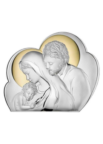 Ікона від італійського виробника – компанії Valenti & Co. Виріб складається з основи (коричнева матова МДФ покрита кількома кулями лаку для захисту від пошкоджень) та лицевої сторони (карбування зі срібним покриттям, яке доповнює позолота). При виготовленні використовують матеріал MIRO-SILVER – це нова металева обробка поверхні в якові входити шар чистого срібла, отриманий за допомогою методики вакуумного напилення, що надає покриттю твердість і більшу стійкість до окислення. На зворотній стороні є отвір та підніжка, тому ікону можна розмістити на стіні або поставити у Вашому домі. Ікона, на якій зображено Святе Сімейство випромінює теплоту, гармонію та щастя сімейних відносин. Виріб запакований в мішечок та фірмову коробку з тисненням логотипу Valenti, що дозволяє використовувати його як чудовий подарунок для будь-кого – друзів, родичів, колег. Рекомендації по догляду: не використовувати хімічних засобів, протирати м'якою суху ганчіркою.