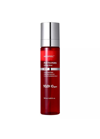 MEDIPEEL Phyto Exosome PDRN Lifting Shot Mist - двофазний ліфтинг-міст від корейського бренду MEDIPEEL, розроблений для боротьби з ознаками старіння. Формула з фітоекзосомами яблука і полінуклеотидами (PDRN) лотоса інтенсивно омолоджує шкіру, відновлює її пружність і еластичність, даруючи свіжий і підтягнутий вигляд. Міст складається з двох фаз у співвідношенні 1:9. Кремова текстура (1 частина) утворює на шкірі захисну плівку, що утримує вологу, а водна есенція (9 частин) насичена потужними антивіковими компонентами, які проникають у глибокі шари епідермісу для досягнення максимального ефекту. Засіб легко наноситься у форматі спрею, швидко поглинається і не обтяжує шкіру, повертаючи їй пружність вже після першого застосування. Підходить для всіх типів шкіри. Основні переваги: Моментальне зволоження: швидко знімає відчуття сухості та стягнутості. Поліпшення кольору обличчя: Освітлює та вирівнює тон шкіри, роблячи її більш рівномірною та сяючою. Заспокоєння шкіри: Екзосоми допомагають знизити подразнення та почервоніння. Застосування поверх макіяжу: Ідеальний для використання протягом дня, включаючи поверх макіяжу, для додаткового зволоження та сяйва. Доведений ліфтинг-ефект: Вплив на 6 ключових зон обличчя (лоб, очі, щоки, носогубні складки, область рота, підборіддя) після одного застосування. Фітоекзососоми нового покоління: Забезпечують глибоку доставку активних компонентів, зміцнюючи шкірний бар'єр і покращуючи текстуру шкіри. MEDIPEEL Phyto Exosome PDRN Lifting Shot Mist ідеальний для швидкого освіження та зволоження шкіри протягом дня, чудово підходить для використання в офісі або в дорозі, відновлюючи втомлену шкіру. і надаючи їй здорового сяйва. Які проблеми вирішує: - Зневоднення шкіри. - Туслість і втома шкіри. - Втрата тонусу та пружності. - Роздратування та почервоніння шкіри. - Вплив зовнішніх забруднювачів та вільних радикалів. - Нерівномірний тон шкіри. - Необхідність швидкого освіження шкіри. У складі: 9 типів гіалуронової кислоти. Гіалуронова кислота — відомий інгредієнт для зволоження шкіри, який допомагає утримувати вологу та підтримувати пружність. Використання дев'яти різних типів гіалуронової кислоти забезпечує багаторівневе зволоження, дозволяючи активній речовині проникати у різні шари шкіри, що сприяє тривалому та ефективному зволоженню. Комплекс вітамінів (C, B5, H, B6, B9, B1, B12). Кожен з цих вітамінів відіграє важливу роль у підтримці здоров'я шкіри: Вітамін C є потужним антиоксидантом, який захищає шкіру від пошкоджень вільними радикалами та сприяє виробництву колагену. Вітаміни групи B (B5, B6, B9, B1, B12) беруть участь у регенерації шкіри, покращують бар'єрні функції, сприяють зменшенню запалення та покращують текстуру та тон шкіри. Біотин (Вітамін H) підтримує здоров'я шкіри, волосся та нігтів, сприяючи їх зміцненню та здоровому зростанню. Комплекс пептидів. Пептиди — це короткі ланцюжки амінокислот, які допомагають стимулювати виробництво колагену та еластину у шкірі. Набір із 12 різних пептидів цілеспрямовано працює на покращення пружності шкіри, зменшення зморшок та загальне омолодження шкіри. AQUAXYL — це зволожуючий компонент, який оптимізує циркуляцію вологи у шкірі та зміцнює її бар'єр. Він допомагає покращити водний баланс шкіри, знизити втрату вологи та збільшити вміст гіалуронової кислоти в епідермісі. Екстракт м'яти відомий своїми освіжаючим