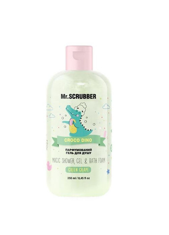 Безсульфатний ароматизований гель для душу та піна для ванни для дітей от 3 років Mr. Scrubber Croco Dino Парфумований гель для душу з динозавриком на флаконі має м'яку безсульфатну формулу, яка не подразнює навіть найчутливішу та дитячу шкіру. Засіб також можна використовувати як піну для прийняття ванни. Гель створює ароматну густу піну, яка ніжно очищає навіть шкіру дитини, не викликаючи відчуття сухості, стягування. Активні компоненти гелю для душу Croco Dino від Mr. Scrubber: гліцерин — зволожує, зміцнює захисний бар'єр дерми, усуває подразнення й почервоніння; натуральні ПАРи на основі кокосової олії — делікатно очищають тіло, мають кондиціонувальний ефект, роблять шкіру ніжною та шовковистою.; сіль — сприяє очищенню пошкодженості епідермісу від хвороботворних мікробів, завдяки високому вмісту натрію й кальцію прискорює загоєння дрібних ранок, тріщин; лимонна кислота — відлущує шкіру, видаляє мертві клітини та прискорює відновлення верхнього шару шкіри. Результат від прийняття душу та ванни з гелем Croco Dino від Mr. Scrubber: ніжне очищення шкіри; зволоження та пом'якшення дерми; зменшення почервоніння, подразнення. Спробуйте самі та подаруйте цей милий флакон із динозавриком тим, хто вам доріг. Зробіть турботу про шкіру — свою та дитину — особливим моментом щодня! Спосіб застосування: Як гель для душу: нанести гель на вологу мочалку та спінити. Розподілити піну по всьому тілу та ретельно змити водою. Як піну для ванної: налити трохи засобу у ванну та спінити. Об'єм: 250 мл