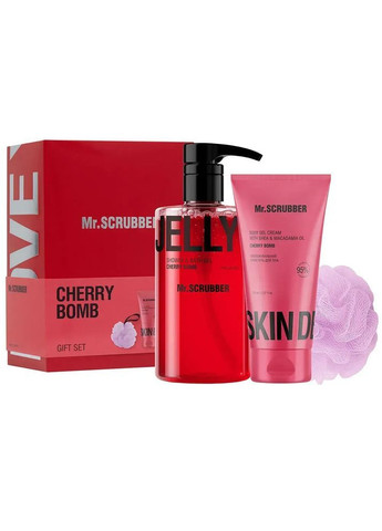 Подарунковий набір Cherry Bomb – це турбота, ніжність і задоволення у стильній коробці. Усе, що потрібно для щоденного релаксу вдома після насиченого дня. Усередині повноцінний бʼюті-ритуал: зволожувальний крем-гель SKIN DELIGHTS, ароматний гель для душу JELLY BUBBLES і мʼякенька мочалка. Це твій домашній догляд і комфорт. І тіло тобі скаже «дякую». Cherry Bomb – яскравий, соковитий аромат стиглої вишні з легкими карамельними нотами миттєво заряджає енергією та викликає усмішку. У наборі: • зволожувальний крем-гель SKIN DELIGHTS Cherry Bomb, 150 ml • гель для душу JELLY BUBBLES Cherry Bomb, 500 ml • мочалка «Хмаринка»