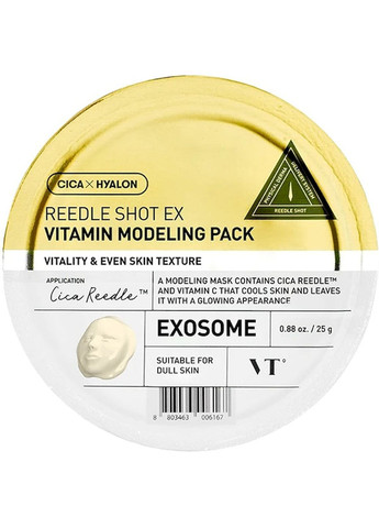 Моделювальна маска для обличчя з колагеном VT Cosmetics Reedle Shot EX Collagen Modeling Pack заспокоює шкіру, зволожує її, вирівнює тон, знімає запалення та подразнення. Основний інгредієнт діатомова земля – це природний мінерал, який глибоко очищає пори, видаляє токсини, поглинає надлишковий себум і сприяє м’якому відлущуванню мертвих клітин. Сульфат кальцію допомагає створювати текстуру маски, що рівномірно розподіляється по шкірі, а магнію оксид додатково забезпечує детоксикаційний ефект. Силіка діє як м'який абсорбент, що матує шкіру та робить її гладкішою. Глибоке зволоження забезпечують глюкоза, трегалоза, мальтодекстрин та бетаїн – вони допомагають утримувати вологу в клітинах, запобігаючи пересиханню та підтримуючи еластичність шкіри. Гіалуронат натрію притягує та утримує вологу, роблячи шкіру більш пружною та зволоженою. Екстракт центелли азіатської та його активні компоненти – азіатикозид, мадекасосид, азіатикова кислота та мадекасова кислота – сприяють загоєнню мікропошкоджень, зменшують почервоніння, зміцнюють шкірний бар’єр і знімають подразнення. Дипотасій гліциризинат, отриманий з кореня солодки, має протизапальні та заспокійливі властивості, допомагаючи боротися із подразненням та висипаннями. Порошок буряка багатий на вітаміни, мінерали та антиоксиданти, які допомагають боротися з вільними радикалами та уповільнюють процес старіння. Екстракт прополісу має протизапальні, антибактеріальні та відновлюючі властивості, що робить його особливо корисним для проблемної та чутливої шкіри. Орисове борошно допомагає вирівняти тон шкіри, усуваючи тьмяність і покращуючи її текстуру. Альгін та карбоксиметилцелюлоза утворюють гелеподібну структуру, яка допомагає компонентам краще взаємодіяти зі шкірою. Дегідроацетатна кислота виступає як природний консервант, що продовжує термін зберігання засобу. Засоби від бренду VT Cosmetics можливо замовити в інтернет-магазині Cosmic за вигідною оптовою ціною. Застосування: мірною лопаткою взяти необхідну кількість засобу, додати 6-7 столових ложок води і перемішати лопаточкою, поступово нанесіть змішану маску на шкіру. Змивати маску через 15-20 хвилин водою. Склад: Diatomaceous Earth, Glucose, Calcium Sulfate, Algin, Tetrasodium Pyrophosphate, Magnesium Oxide, Beta Vulgaris (Beet) Root Powder, Cellulose Gum, Hydrolyzed Collagen, Dehydroacetic Acid, Maltodextrin, Oryza Sativa (Rice) Powder, Trehalose, Adenosine, Silica, Dipotassium Glycyrrhizate, Betaine, Whey Filtrate, Centella Asiatica Extract, Milk Exosomes, Sodium Hyaluroфnate, Propolis Extract, Asiaticoside, Madecassoside, Madecassic Acid, Asiatic Acid.