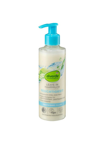 Зволожуюче молочко для волосся без змивання з гіалуроновою кислотою, 200 мл Alverde Alverde Naturkosmetik Зволожуюче молочко для волосся з гіалуроновою кислотою Рецептура з гіалуроновою кислотою та органічним алое вера покращує розчісування волосся Інтенсивне зволоження для сухого та пошкодженого волосся Для гладкого та доглянутого волосся Без силіконів, веганське, сертифіковане NATRUE Зволожуюче молочко для волосся з гіалуроновою кислотою від alverde Naturkosmetik — ідеальне зволоження для вашого волосся. Поживна формула з органічним алое вера та гіалуроновою кислотою живить волосся та полегшує розчісування, не обтяжуючи його. Завдяки доглядаючому складу шкіра голови зволожується, а сухе та пошкоджене волосся знову стає еластичним. Ніжний аромат забезпечує приємне освіження. Всі продукти alverde мають сертифікат NATRUE: не містять компонентів на основі мінеральних олій, синтетичних ароматизаторів та барвників, генетично модифікованих компонентів, синтетичних консервантів. Ця упаковка підлягає переробці, складається на 98 % з переробленого матеріалу (без кришки та етикетки). Властивості: Властивості продукту: натуральна перевірена косметика Текстура / Консистенція / Застосування: емульсія Тип волосся: сухе волосся, пошкоджене / пересушене волосся, волосся без блиску Склад: Вода, гліцерин, спирт, гібридна олія Соняшнику, триетилцитрат, порошок соку листя алое барбаденсис, гіалуронат натрію, олія Olus, парфум, левулінова кислота, левулінат натрію, цетеариловий спирт, геланова камедь, стеароїлглутамат натрію, лецитин, цетеарилсульфат натрію, гліцерил каприлат, п-анісова кислота, бензиловий спирт, ліналоол, лимонна кислота, гідроксид натрію