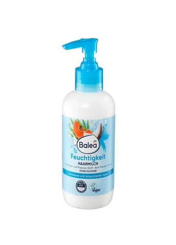 Зволожуюче молочко для волосся Balea з кокосом, 200 мл Зволожуюче молочко для волосся Balea з ароматом кокоса спеціально призначене для сухого та пошкодженого волосся. Воно забезпечує волоссю зволожуючий догляд, термозахист при сушінні феном і полегшує розчісування. Інноваційний відновлюючий комплекс захищає ваше волосся і розгладжує його поверхню. Сухе і пошкоджене волосся набуває більше блиску та еластичності. При цьому молочко зволожує шкіру голови. Результат — неймовірна слухняність і приголомшливий блиск волосся від коренів до кінчиків. Приємний аромат кокоса та папайї порадує вас при нанесенні і подарує відчуття літнього бризу. Для м'якого волосся — зволожуюче молочко Balea! З формулою без мікропластику. Характеристики: - забезпечує термозахист при сушінні феном і полегшує розчісування - з доглядаючою формулою — доглядає за волоссям і розгладжує його поверхню - сухе і пошкоджене волосся отримує більше еластичності та блиску - з насосом для простого і точного нанесення - без силіконів - для сухого і пошкодженого волосся Застосування: Після миття волосся рівномірно втріть у вологе волосся. Не змивайте. Дерматологічно тестовано.