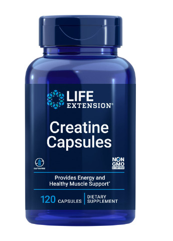 Life Extension Creatine Capsules - моногідрат креатину з вітаміном С, яка підтримує силу м'язів, сприяє набору м'язової маси та покращенню силових показників. Креатин - це з'єднання, яке природним чином присутнє в організмі, в першу чергу в скелетних м'язах. Креатин є попередником аденозинтрифосфату (АТФ), джерела хімічної енергії, що споживається всіма клітинами. Запаси креатину в організмі формують резерв доступного АТФ для швидкого отримання енергії при високоінтенсивних навантаженнях. Creatine Capsules від Life Extension є базовою добавкою для спортсменів та всіх, хто хоче отримати максимальну віддачу від кожного тренування. Додавання кількості креатину, що рекомендується, в щоденний раціон сприяє збільшенню м'язової маси, сили і працездатності в результаті фізичних вправ у всіх вікових групах і при різних видах тренування. Креатин Life Extension дозволяє оптимізувати енергетичний обмін за рахунок підтримки більш високих рівнів енергетичного запасу організму, підтримує метаболізм білків у клітинах м'язів, зменшує пошкодження тканин шляхом придушення окислювального процесу. Креатинові капсули Life Extension складаються з легкозасвоюваного моногідрату креатину з додаванням кращої форми вітаміну С (аскорбіл пальмітату). Переваги Life Extension Creatine Capsules сприяє зростанню м'язової маси; збільшує силу, продуктивність та витривалість; підтримує здорову функцію серцевого м'яза; прискорює відновлення; сприяє здоровому енергетичному обміну; має антикатаболічний ефект; заповнює запаси глікогену; не містить ГМО та глютен; Рекомендації щодо застосування: Приймати по 2 капсули 2 десь у день, запиваючи водою чи соком. Під час прийому препарату пийте багато рідини, підтримуючи адекватний стан гідратації. Не приймати за наявності захворювань нирок. Зберігати у сухому прохолодному місці.