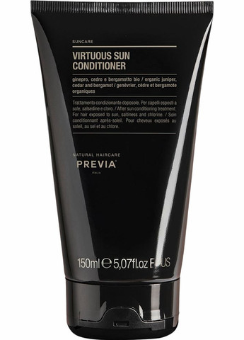Розплутувальний кондиціонер PREVIA SUN створений для інтенсивного догляду за волоссям, яке зазнало шкідливого впливу сонця, солоної та хлорованої води. Його легка, але насичена формула миттєво відновлює м’якість і слухняність пасм, зменшує сухість та запобігає ламкості. Завдяки комплексу органічних екстрактів ялівцю, кедра та бергамота засіб має антиоксидантну, пом’якшувальну та освіжаючу дію. Формула VEGAN. Основні переваги: Миттєво розплутує волосся. Відновлює м’якість та еластичність. Захищає від впливу сонця, солі та хлору. Пом’якшує та освіжає. Формула VEGAN – без інгредієнтів тваринного походження. Активні компоненти: Органічний екстракт ялівцю – має антиоксидантні властивості, зміцнює волосся. Органічний екстракт кедра – тонізує та пом’якшує. Органічний екстракт бергамота – освіжає та відновлює баланс шкіри голови. Аромат: Свіжий, трав’яний, з нотками ялівцю та бергамота. Для кого цей продукт: Підходить для всіх типів волосся після перебування на сонці, у морській або хлорованій воді. Ідеальний у літній сезон або після відпустки. Результат: Волосся м’яке, зволожене, легко розчісується, має природний блиск і захист.