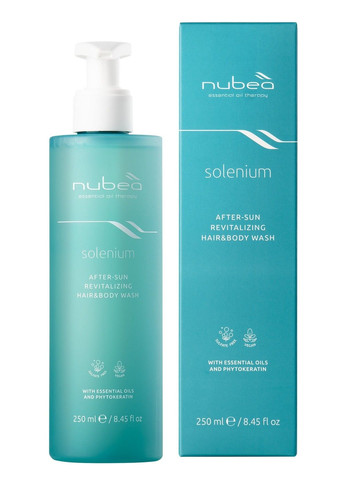 Nubea Solenium After-Sun Hair & Body Wash — освіжаючий фреш-гель для тіла та волосся після перебування на сонці, у морській чи хлорованій воді. Завдяки делікатній формулі з ефірними оліями бергамота, мандарина, іланг-ілангу та фітокератином, м’яко очищає шкіру й волосся від залишків солі, піску, хлору та інших забруднень, надає відчуття свіжості й комфорту. Переваги продукту: 2-в-1: гель для тіла та шампунь для волосся Делікатно, але ефективно очищає Освіжає, тонізує та пом’якшує Відновлює після сонячного впливу, морської та хлорованої води Має приємний природний аромат Підходить для щоденного використання Активні компоненти: Ефірна олія бергамота — тонізує шкіру, знімає подразнення Мандаринова олія — освіжає, сприяє оновленню клітин Іланг-іланг — заспокоює, зволожує, пом’якшує волосся та шкіру Фітокератин — зміцнює структуру волосся, допомагає відновити після сонця Спосіб застосування: Нанесіть на вологе волосся та шкіру. Делікатно помасажуйте до утворення м’якої піни. Змийте теплою водою. За потреби повторіть. Для повноцінного догляду після сонця використовуйте разом із засобами лінії Nubea Solenium.