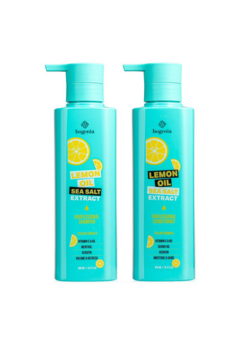 Набір для догляду за волоссям Bogenia Lemon Oil (Шампунь Кондиціонер) Шампунь для волосся Bogenia Lemon Oil 450 мл професійний Шампунь ніжно очищає та відновлює волосся завдяки унікальній формулі з лимонною олією, екстрактом морської солі та вітамінами C і B5. Підвищує об'єм, підсилює волосся, освіжає шкіру голови та допомагає зберігати колір фарбованого волосся. Арганова олія та гідролізований кератин зволожують і відновлюють пошкоджене волосся, надаючи йому блиск і силу. Кондиціонер для волосся Bogenia Lemon Oil 450 мл професійний Збільшує вологу та живить волосся завдяки лимонній олії, екстракту морської солі та вітамінам C і B5. Кондиціонер підсилює волосся, зменшує його ламкість, відновлює блиск і робить його гладким та шовковистим. Підходить для всіх типів волосся, зокрема для фарбованого та пошкодженого.. Після використання шампуню нанесіть невелику кількість кондиціонера на кінчики волосся, уникаючи шкіри голови та коріння, залиште на 2-3 хвилини, потім ретельно змийте теплою водою.