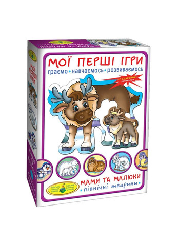 Логічна настільна гра Мами і малюки. "Північні тварини" 81121, призначена для самих маленьких діток, із серії Мої перші ігри від української торгової марки Енергія Плюс. Забава, спрямована на розвиток інтелекту, посприяє поліпшенню багатьох важливих навичок Вашої дитини. Яскраві, барвисті картинки звіряток півночі не залишать байдужими найвимогливіших маминих розумників. В процесі гри Ваш непосида навчиться логічно мислити, буде розвивати асоціативне та просторову уяву, навички пам'яті, колірне сприйняття. Забава позитивно впливає на формування наочно-образного мислення, покращує координацію рухів, дрібну моторику рук і пальчиків. Всі ігри представленої колекції оформлені в красивій забарвленням з подарунковим упакуванням і продуманий до дрібниць наповненням. Така забава підніме Вашому малюку настрій, допоможе йому в ігровій, приємній формі розширити кругозір і навіть поповнити словниковий запас.