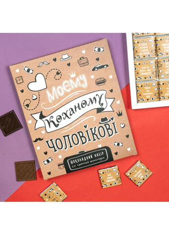 Шоколадний подарунковий набір Shokosmile Моєму Коханому чоловікові крафтовий - це класний подарунок! Це не просто шоколад в коробці - це неймовірні слова та емоції в кожній шоколадці. << Смачний шоколад та щирі зізнання. Додайте у ваше життя більше романтики! Всі чоловіки полюбляють солодке, даний набір стане оригінальним подарунком для коханого чоловіка. >> В наборі 20 шоколадок, на кожній з них є чудові побажання та привітання: ― Коли ти поруч - світ зупиняється ― Ти вмієш дати доречну пораду ― Я безмежно люблю тебе ― Ти даєш все, що мені потрібно ― Ти вмієш вирішити будь - яку задачу ― Я впізнаю тебе по звуку кроків ― Твої дотики найніжніші ― Ти найкращий чоловік у світі ― Ти робиш мене щасливою ― Ти надихаєш мене ― Я радію кожним твоїм успіхам ― З тобою я впевнена в майбутньому ― Ти моя надійна підтримка ― Це щастя - прожити з тобою все життя ― Разом ми можемо все ― Ніколи не забуду наше перше побачення ― Твій аромат найрідніший ― Обожнюю твоє почуття гумору ― Поруч з тобою я почуваюсь справжньою жінкою ― Твій голос заспокоює мене Особливості: Шоколад завжди й за будь-якої нагоди є прекрасним подарунком Піднімає емоційний стан і тонус у м'язах, зміцнює імунітет Шоколад додає енергії та підвищує працездатність Вміст какао: Чорний 60%, Молочний 33% Кількість в упаковці: 20 міні-плиток Характеристики: Виготовлено: в Україні Шоколад: Чорний, Молочний Вага: 100 г (20 шоколадок) Розмір: 19*16*1,7 см Кількість плиток: 20 шт Термін придатності: 10 місяців