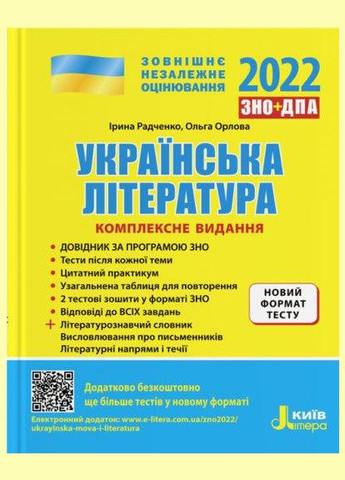 Посібник розроблено на зразок тестових завдань зовнішнього незалежного оцінювання. Завдання подано за варіантами відповідно до програмових вимог ЗНО з української мови та літератури. Правильні відповіді для самоконтролю наведено в кінці збірника. Структура посібника дозволяє користуватись ним як самостійно, так і на уроках. Видання призначено для випускників загальноосвітніх навчальних закладів і вчителів української мови та літератури. Зовнішнє незалежне оцінювання - це підсумок тривалої й важкої роботи кожного з вас. Тому підготовка до нього починається дуже рано , щоб отримані результати ЗНО втішили вас, дали змогу вступити до обраного вишу і здобути омріяну спеціальність. У цій підготовці вашими помічниками, звичайно, є вчителі, а також підручники, посібники, журнали, зрештою, Інтернет. Таке розмаїття джерел інформації втішає, а з іншого боку - непокоїть , адже кожен із вас, думаємо, мріє про такий посібник, що буде доступний за способом викладання теми, задовольнить обсягом та якістю (там не має бути зайвої інформації, а лише те, що передбачено програмою ЗНО), допоможе корисними порадами, справді - посібник-друг, якому можна довіритись у такій відповідальній справі, як підготовка до ЗНО. Радимо звернути увагу на наш посібник, де ПОВНО розглянуті УСІ теми, передбачені програмою ЗНО . Цей посібник ставить на меті кілька завдань: • ознайомити абітурієнтів із програмою ЗНО з української літератури , що дозволить кожному з вас визначити обсяги й рівень навчального матеріалу і розрахувати відповідний час підготовки до ЗНО; • допомогти повторити й систематизувати вивчений матеріал з української літератури; для цього автори подали відповідний теоретичний матеріал, який у межах чинної програми ЗНО з української літератури дозволить вам засвоїти відомості щодо літературного процесу , українських письменників, особливостей внесених до програми художніх творів, а також матеріал з теорії літератури; • практично підготуватися до складання тестів як форми зовнішнього незалежного оцінювання , тому пори розробили достатню тестову базу відповідно до чинної програми ЗНО, де кожний з вас має можливість потренуватися (як з учителем, так і самостійно) виконувати характерні для ЗНО тестові завдання; до того ж ви зможете навчитися правильно заповнювати бланки відповідей, щоб уникнути технічних помилок; • дати методичні, психологічні й організаційні поради щодо підготовки до ЗНО, які допоможуть, економлячи сили й час, одержати високий результат.
