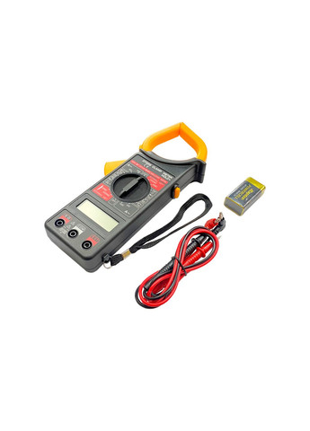 Компактний тестер для вимірювання напруги постійного та змінного струму, сили постійного струму, опору, перевірки працездатності транзисторів та діодів. Увімкнення та вибір вимірюваних параметрів здійснюється центральним круговим перемикачем. Напрямок стрілки центрального перемикача вказує на зону поточних вимірів. Кожна зона відповідає певному параметру і, своєю чергою, може бути поділена на кілька секторів цифрових значень. Кожному сектору відповідає фіксоване положення перемикача. Є сектор для перевірки hFE транзисторів. Роз'єм розділений на дві частини для транзисторів типу NPN і PNP. У роз'ємі є підписані отвори для висновків емітера, бази та колектора. При цьому вимірі на дисплеї відображається коефіцієнт посилення струму. Під час тестування діодів на дисплеї з'явиться пряме падіння напруги на діоді. Для проведення вимірювань у комплект поставки входять два щупи, чорного та червоного кольорів. Чорний вставляється в нижнє гніздо з написом COM. Червоний щуп вставляється у верхнє гніздо при вимірюванні постійного струму понад 200 мА та в середнє гніздо для проведення інших вимірів. Результати вимірювання відображаються на РК-дисплеї. Цифри та розділові знаки на 4-х цифровому дисплеї видно досить добре. При вимірюванні напруги в максимальних положеннях (1000v DC і 750V AC) у лівій частині екрана з'являється попереджувальний напис «NV». Живлення приладу здійснюється від 9-вольтової батареї. Якщо на дисплеї з'явиться зображення акумулятора, батарею потрібно замінити. Для її заміни потрібно відкрутити 2 гвинти на задній стороні корпусу. Характеристики: сектора вимірювання напруги постійного струму (DCV): 1000V / 200V / 20V / 2000mV / 200mV; сектора вимірювання напруги змінного струму (ACV): 750V/200V; сектора вимірювання сили постійного струму (DCA): 200mA/20mA/2000μA/200μA + окремо 10A; сектора вимірювання опору (Ω): 2000KΩ/200KΩ/20KΩ/2000Ω/200Ω; розмір дисплея: 47 х 14 мм; розміри цифр: 13 х 6 мм; довжина щупів із проводами: 0,67 м; розміри мультиметра: 125 х 69 х 24 мм; габарити упаковки: 130 х 104 х 30 мм.