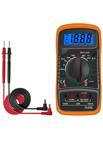 Відкрийте світ точності та надійності з цифровим мультиметром XL830L – вашим незамінним помічником у електротехніці. Цей універсальний прилад не тільки забезпечує високу точність вимірювань у широкому діапазоні напруг і струмів, але й винятково зручний у використанні завдяки компактним розмірам та підсвічуванню екрана. Незалежно від того, професіонал ви або любитель, XL830L запропонує вам необхідну функціональність для ефективної роботи: від вимірювання опору до тестування транзисторів та діодів. З функцією утримання даних та міцною, надійною конструкцією, цей мультиметр стане вашим надійним супутником у будь-яких умовах, забезпечуючи точність та зручність при кожному використанні. Виберіть XL830L – виберіть інструмент, який перевершить ваші очікування! Технічні характеристики: Параметр Значення Діапазон вимірювання постійної напруги (DC Voltage) 200mV/2V/20V/200V/600V ±(0.5%) Діапазон вимірювання змінної напруги (AC Voltage) 200V/600V ±(1.0%) Діапазон вимірювання постійного струму (DC Current) 200μA/2mA/20mA/200mA/10A ±(1.0%) Діапазон вимірювання опору (Resistance) 200Ω/2kΩ/20kΩ/200Ω/2MΩ ±(1.0%) Вимір тріоду (Triode Measurement) Так (PNP/NPN Triode hFE) Вхідний опір (Input Resistance) 1MΩ Тип батареї (Battery Type) 9V (в комплекті) Максимальне відображення (Max Display) 1999 Розмір дисплея (Display Size) 45*20 мм Габаритні розміри (Dimensions) 145*70*40 мм Безперервна напруга (Continuous voltage) 200mV-2-20-200-600V ± 0.5% Вимірювання діода (Diode measurement) Так Цей мультиметр надає всі необхідні функції для проведення базових вимірювань в електротехніці, включаючи вимірювання напруги, струму та опору, а також має додаткові функції, такі як тестування транзисторів та діодів. Мультиметр цифровий тестер XL830L / 600V DC-10A / функція Hold / підсвічування виготовлений із високоякісних матеріалів із ретельним контролем на всіх етапах виробництва. Працюй із задоволенням із професійним обладнанням!