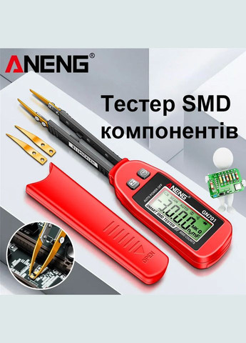 Цифровий мультиметр-пінцет для SMD компонентів Aneng GN701 застосовується для вимірювання опору, ємності, тестування діодів і продзвонки ланцюгів. Його висока точність забезпечує надійні результати, що робить його незамінним інструментом як для професіоналів, так і для любителів. Прилад досить простий в управлінні, має автоматичний вибір діапазону вимірюваного параметра, а перемикання режимів відбувається швидко за допомогою кнопки F. Тестер має компактний розмір і живиться всього від однієї батареї типу CR2032. Особливості: - Портативний розмір, точні результати вимірювань, швидка оцінка стану компонентів. - Дає змогу швидко перевіряти резистори/конденсатори/діоди та інші компоненти, не випаюючи їх із плати. - При перевищенні меж вимірювання на РК-екрані відображається символ "OL". - Швидка адаптація до різних сценаріїв застосування завдяки змінним наконечникам пінцету. - Автоматичне вимкнення через 20 хвилин бездіяльності для економії заряду батареї та індикатор низького заряду батареї. - Клавіша утримання даних забезпечує припинення оновлення тестових даних, зберігаючи при цьому поточні свідчення на екрані. Характеристики: - Модель: GN701. - Матеріал: ABS пластик. - Опір: 0-30 МОм, 0,1-10 кОм, ±(1,2% від показання +3 цифри). - Ємність: 0нФ-30мФ, 1пФ-10мкФ, ±(3,0% від показання +3 цифри). - Діодний тест: Так. - Продзвонка: Так. - Збереження даних: Так. - Автоматичне вимкнення: Так. - Підказка про низький заряд батареї: Так. - Екран: РК-дисплей. - Джерело живлення: батарея CR3032 3 В (НЕМАЄ В КОМПЛЕКТІ). - Максимальна розрядність: 3000 відліків. - Робоча температура й вологість: 0 ℃ ~ 40 ℃ / 32 ℉ ~104℉, відносна вологість <80%. - Рівень безпеки: 2014/30/EU CAT II. - Розмір виробу: 172,5 * 32 * 21 мм. - Вага в упаковці: 100 г. Комплектація: прилад, запасні наконечники, захисна кришка, інструкція з експлуатації (англ.), коробка.