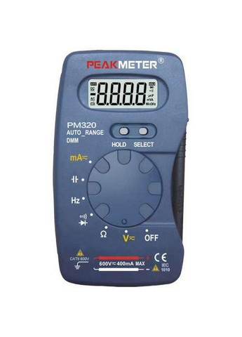Відправка протягом 1-2 робочих днів. Цифровий кишеньковий мультиметр з функцією вимірювання ємності та частоти PROTESTER PM320 Незважаючи на скромні розміри, цифровий мультиметр PM320 має великі функціональні можливості. З його допомогою можна виміряти такі параметри електричної мережі: змінна напруга постійна напруга постійний струм опір ємність частоту Також за допомогою тестера PM320 можна виконати тест діодів, тест транзисторів та здійснити продзвінок ланцюга. Незвичайний дизайн приладу. На передній панелі зверху розташований дисплей на 4000 відліків. Під ним нижче розташовані кнопки HOLD для утримання результату вимірювання та кнопка SELECT для вибору підрежимів. Ще нижче знаходиться круглий перемикач вибору вимірюваних величин. Вибір діапазонів вимірювання відбувається автоматично. Щупи приладу вбудовані і компактно розміщуються в бічних гранях мультиметра. Також у комплекті з мультиметром поставляється щільний захисний чохол. Розміри приладу можна порівняти з розмірами смартфона, тому РМ320 з легкістю поміститься в кишені спецодягу або в ящику з інструментами. Завдяки великому набору вимірюваних величин і невеликому розміру, мультиметр PM320 набув популярності у автоелектриків. Його сміливо можна використовувати не лише як допоміжний інструмент, а й як основний робочий прилад. Характеристики: Вимірювані параметри: напруга, струм, опір, ємність, частота Діапазон напруги DC: 400 мВ /4 В / 40 В / 400 В / 600 В Дозвіл: 0,1 мВ / 1 мВ / 10 мВ / 100 мВ / 1 В Похибка: ±0,5%±3 е.м.р. Діапазон напруги АС: 4 В / 40 В / 400 В / 600 B Дозвіл: 1 мВ / 10 мВ / 100 мВ / 1 В Похибка: ±0,8%±3 е.м.р. / ±1%±3 е.м.р. Сила струму DC: 40 мА / 400 мА Дозвіл: 0,01А / 0,1А Похибка: ±2,0%±3 Сила струму АС: 40 мА / 400 мА Дозвіл: 0,01А / 0,1А Похибка: ±3,0%±4 Опір: 400Ом / 4кОм / 40кОм / 400кОм / 4МОм / 40МОм Дозвіл: 0,1 Ом / 1 Ом / 10 Ом / 0,1 кОм / 1 кОм / 10 кОм Ємність: 4 нФ / 40 нФ / 400 нФ / 4 мкФ / 40 мкФ / 400 мкФ Дозвіл: 0,001 нФ / 0,01 нФ / 0,1 нФ / 1 нФ / 10 нФ / 100 нФ Похибка: ±5%±10 / ±4%±5 / ±3%±3 Частота: 10 Гц / 100 Гц / 1000 Гц / 10 кГц / 100 кГц Дозвіл: 0,01 Гц, 0,1 Гц, 1 Гц, 0,01 кГц, 0,1 кГц Похибка: ±0,5%±3 Дод. функції: тест діодів, провідність Вибір меж: Автоматичний Кількість відліків: 4000 Харчування: 2 батареї на 3В, SR44 або LR44 Габарити: 120 х 70 х 18 Вага: 110 г Комплектація: Мультиметр 1 шт. Батареї на 3В, SR44 або LR44 2 шт. Футляр 1 шт. Інструкція з експлуатації 1 шт. Тип: Цифровий; Одиниці вимірювання постійної напруги: В|мВ; Одиниці вимірювання змінної напруги: В|мВ; Одиниці вимірювання постійного струму: А|мА; Одиниці вимірювання змінного струму: А|мА; Одиниці вимірювання опору: кОм|МОм|Ом; Одиниці вимірювання ємності: мкФ|нФ; Одиниці вимірювання частоти: Гц|кГц; Монітор: ЖК; Передача кольорів: Монохромна; Живлення: Батарейки одноразові; Напруга, В: 6; Довжина, мм: 120; Ширина, мм: 70; Висота, мм: 18; Вага, кг: 0.11; Гарантійний термін, міс: 12;