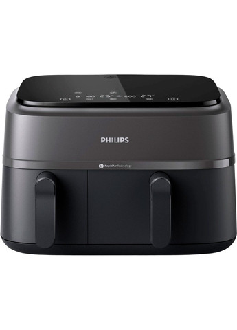Насолоджуйтеся здоровою їжею з до 90% меншим вмістом жиру Гаряче повітря дозволяє готувати ваші улюблені страви з використанням на 90% менше жиру без жодної шкоди для смаку. 13 різних режимів приготування одним натисненням кнопки Смажте, випікайте, готуйте на грилі, запікайте тощо. Установіть час і температуру вручну або скористайтеся стандартними функціями 13 різних режимів приготування, включно із розігріванням, розморожуванням і зберіганням тепла. Віконце для спостереження за процесом приготування Більше ніяких здогадок. Слідкуйте за своєю стравою, щоб бачити, як вона готується, і вийняти її у потрібний момент! Сенсорний екран для зручного керування Простий і зручний сенсорний екран підтримує 9 стандартних програм: заморожена картопля фрі, свіжа картопля фрі, курячі гомілки, м’ясо, риба, сніданок, овочі, пиріг і зберігання тепла. Смачні рецепти спеціально для вашої мультипечі в HomeID Відкрийте для себе тисячі безкоштовних рецептів і спеціальних налаштувань для вашої мультпечі. 93% користувачів стверджують, що HomeID полегшує приготування їжі. Швидке та легке чищення Заощаджуйте час на прибиранні за допомогою StarPlate з антипригарним покриттям, яку можна мити в посудомийній машині. Ідеальний розмір для будь-якої кухні з ємністю 4,2 л Компактна конструкція ідеально підходить для будь-якої кухні – як великої, так і малої. У 4,2-літрову піч поміщається до 500 г картоплі фрі, 6 курячих гомілок або 500 г овочів. Заощаджуйте час і зменшуйте рахунки за електроенергію Готуйте на 50% швидше та заощаджуйте до 70% електроенергії, використовуючи мультипіч Philips замість духовки. Смачна хрустка скоринка завдяки технології RapidAir Хрустка скоринка ззовні та ніжна текстура всередині, з невеликою кількістю олії або взагалі без неї. Технологія RapidAir з унікальним дизайном starfish створює ідеальний потік повітря для швидкого та смачного приготування кожного разу.