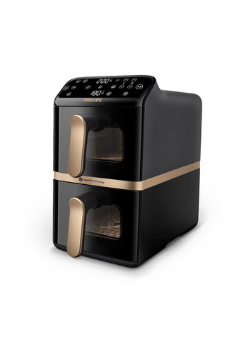 Мультипіч Philips Stacked Dual NA462/70 — це компактна двоярусна аерофритюрниця з подвійним кошиком по 5 л кожен, яка дозволяє готувати дві страви одночасно. Потужність 2300 Вт і технологія RapidAir забезпечують рівномірне приготування з хрусткою скоринкою та мінімальною кількістю олії. Пристрій оснащено сенсорним управлінням, 6 автоматичними програмами та інтелектуальною синхронізацією часу. Завдяки ергономічній конструкції займає на 45% менше місця на кухні.