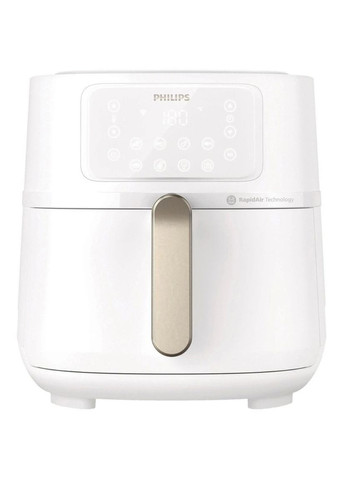 Швидке рівномірне приготування завдяки технології RapidAir Plus Насолоджуйтесь смачною їжею, яка містить до 90% менше жиру. Запатентована технологія RapidAir Plus з унікальною конструкцією у формі зірки має більшу швидкість потоку, забезпечуючи циркуляцію гарячого повітря навколо та крізь страву, завдяки чому вона готується рівномірно всередині та зовні, а ви отримуєте смачну домашню страву. Стильне віконце для контролю процесу приготування Забудьте про вгадування потрібного моменту. Спостерігайте за процесом приготування, щоб побачити момент ідеальної готовності страви. Готуйте стильно. Приберіть жир зі страви за допомогою унікального кошика До 40% зайвого жиру стікає в кошик, залишаючи вам здоровіші страви без втрати смаку. Кошик розділяє страву та жир, який збирається в ємності під час приготування. Нескінченне натхнення з додатком HomeID Понад 10 000 смачних рецептів, створених спеціально для цієї мультипечі, із простими покроковими інструкціями. Вийдіть за рамки смаження гарячим повітрям із 12 способами приготування До ваших послуг 12 функцій приготування: від запікання та смаження на грилі до розморожування та розігрівання. Мінімальне налаштування температури становить 40 ℃, а найдовша програма триває 24 години (висушування та бродіння). Місткості 4,2 л вистачить, щоб готувати повноцінні страви Місткості мультипечі достатньо для всієї сім’ї: до 800 грам овочів; 6 курячих гомілок; 4 шматочків лосося або 5 мафінів. Сенсорний екран для зручного керування Простий і зручний сенсорний екран підтримує 12 попередніх налаштувань на вибір: заморожена картопля фрі, свіжа картопля фрі, курячі гомілки, м’ясо, риба, сніданок, овочі, мафіни, веганські страви, сухофрукти, збереження тепла та кнопка «Улюблене» для збереження вашого власного попереднього налаштування. Заощаджуйте час та енергію Готуйте на 50% швидше та заощаджуйте до 70% електроенергії, використовуючи мультипіч Philips замість духовки. Простота очищення Мультипечі Philips мають антипригарне покриття та знімні частини, які можна мити в посудомийній машині, тому ви менше часу присвячуватиме миттю та більше — улюбленим стравам Не йдіть на компроміс зі смаком 83% наших споживачів вважають, що курячі гомілки, приготовані у мультипечі Philips серії 3000, смачніші, ніж приготовані в духовці.