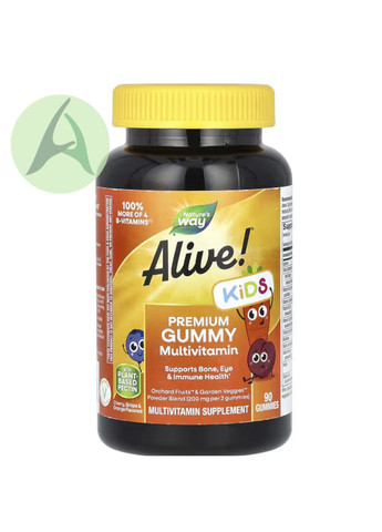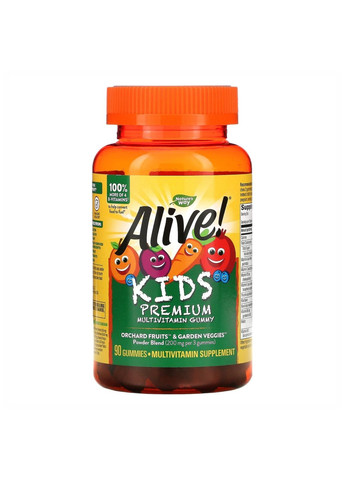 100 % більший вміст чотирьох вітамінів групи B‡, які допомагають перетворювати їжу на енергію. Порошкові суміші Orchard Fruits™ і Garden Veggies™ (200 мг у 3 жувальних цукерках) Мультивітамінна добавка Повний комплекс вітамінів групи B Зроблено з пектином, а не з желатином 15 вітамінів і мікроелементів з інозитолом Вишневий, апельсиновий і виноградний смаки Вегетаріанський продукт Збалансована підтримка росту та розвитку кісток зору клітинної енергії імунної системи ‡ Містить більше тіаміну (0,6 мг замість 0,3 мг), рибофлавіну (0,65 мг замість 0,325 мг), ніацину (8 мг замість 4 мг), біотину (0,03 мг замість 0,015 мг), ніж жувальні цукерки для дітей Alive!® не преміальної якості (15788). Рекомендації із застосування Дітям віком 2–3 роки приймати 2 жувальні таблетки на день. Дітям від 4 років приймати 3 жувальні таблетки на день. Бажано приймати під час їди. Дитина повинна ретельно розжувати жувальні таблетки перед проковтуванням. Інші інгредієнти Сироп органічної тапіоки, тростинний цукор, очищена вода, пектин, лимонна кислота, цитрат натрію, натуральні ароматизатори, овочеві та фруктові соки (барвники), кокосова олія, бджолиний віск. Не містить глютену, желатину, молочних продуктів, інгредієнтів, одержуваних із дріжджів, пшениці, арахісу, яєць.